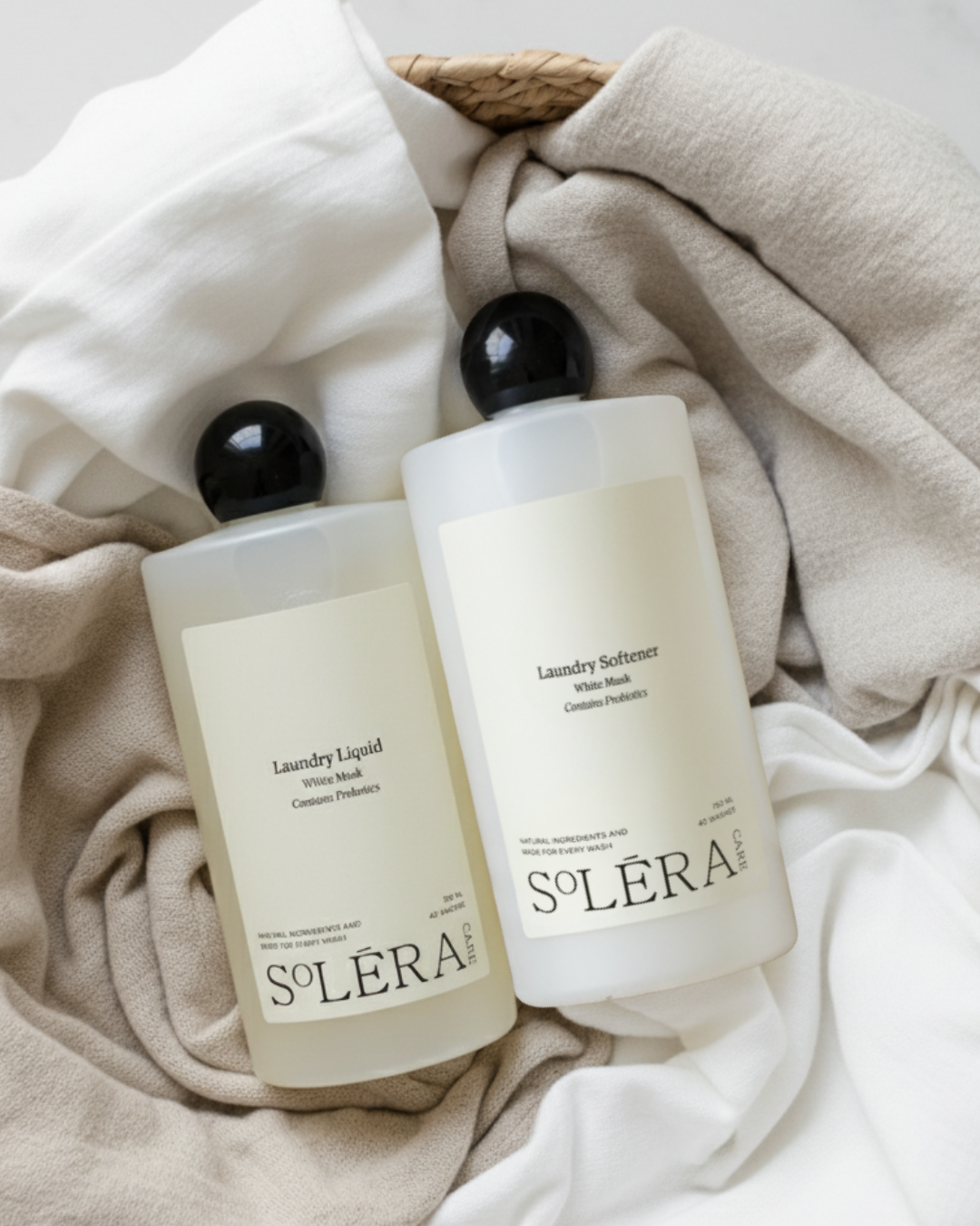Fremtiden inden for tøjvask er her! Soléra Care Probiotic Laundry Liquid og Softener udgør det ultimative plejesæt, baseret på naturlige, plantebaserede ingredienser. Produkterne er fri for parabener, farvestoffer, hormonforstyrrende- og kræftfremkaldende stoffer.
